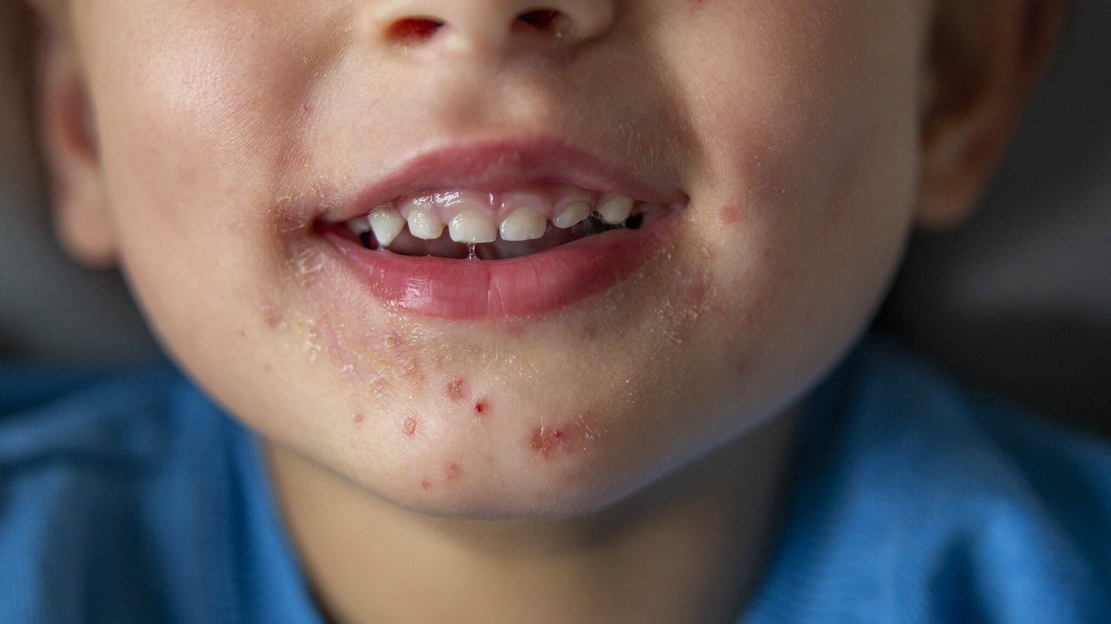 👉 Die Viren gelangen über den Mund in den Körper und vermehren sich zunächst in der Mundschleimhaut. ➡️ Deshalb entstehen die ersten sichtbaren Anzeichen im Gesicht und Mundbereich.